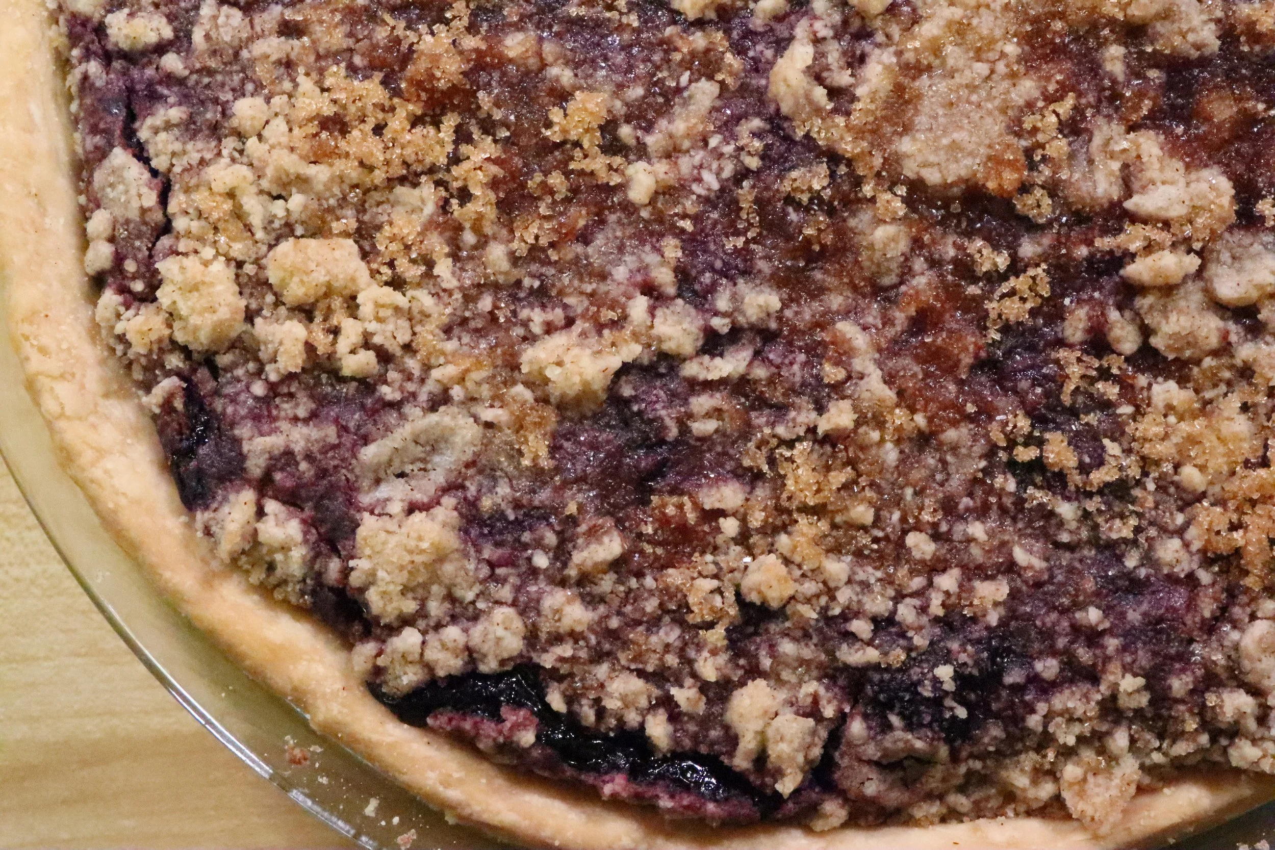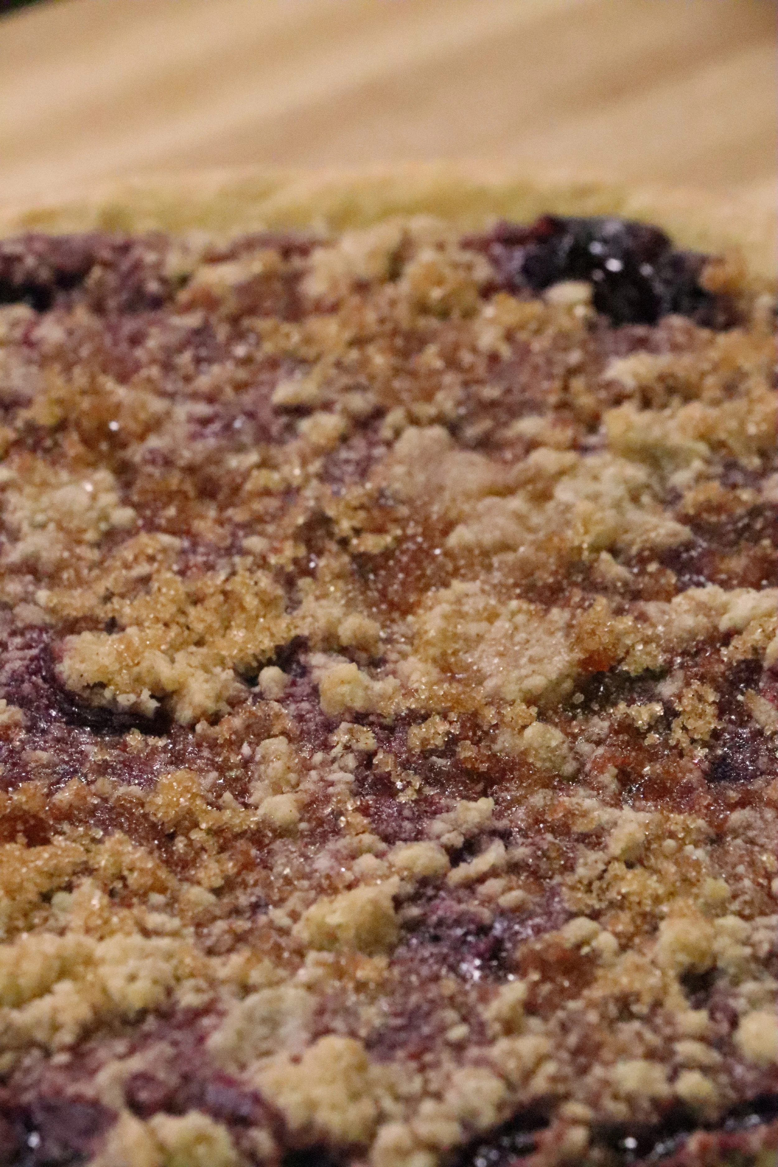 - Using a spoon, sprinkle the crumb topping over the marionberry filling. Optionally top with more brown sugar.