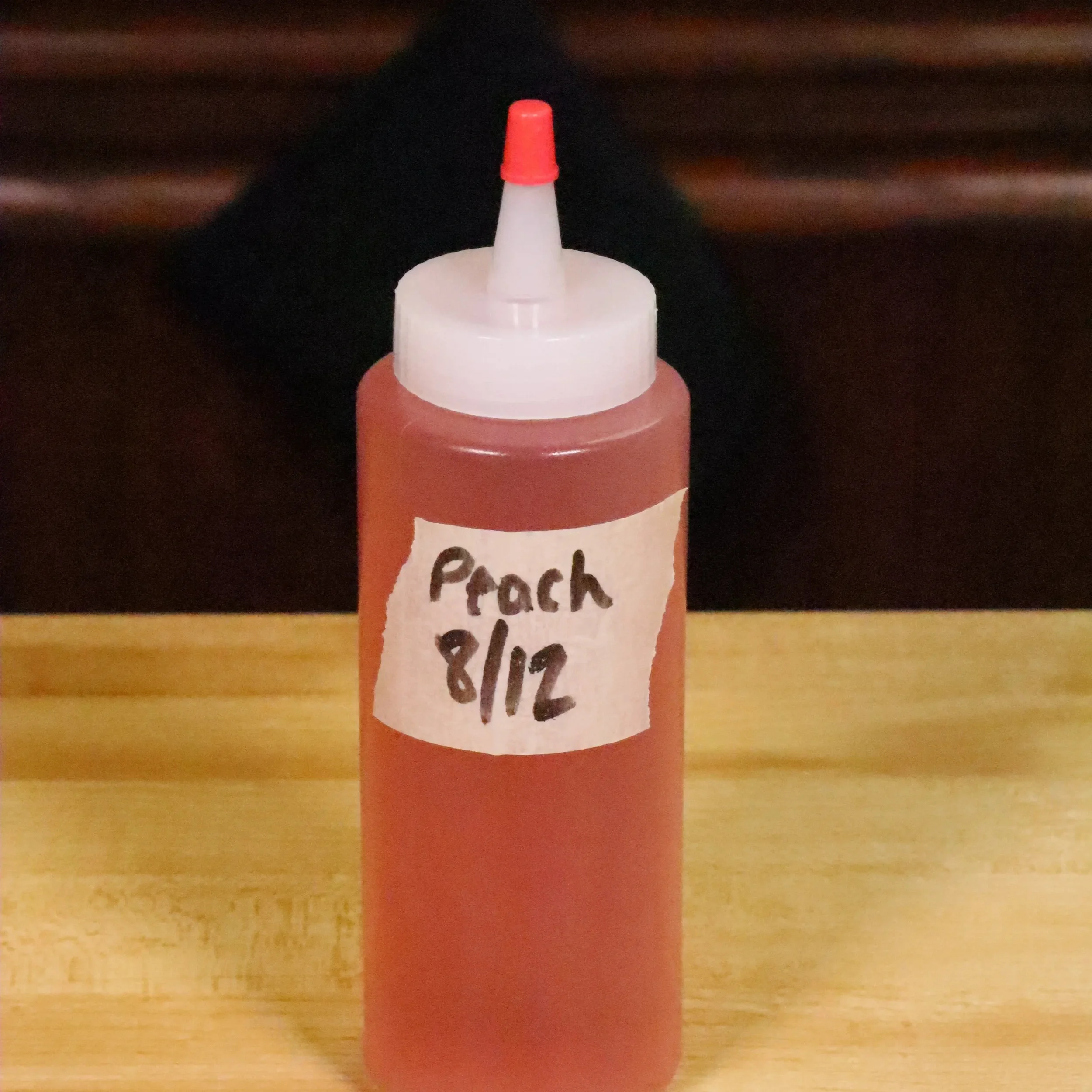 I like to put my peach syrup in a squeeze bottle for easy serving/use.