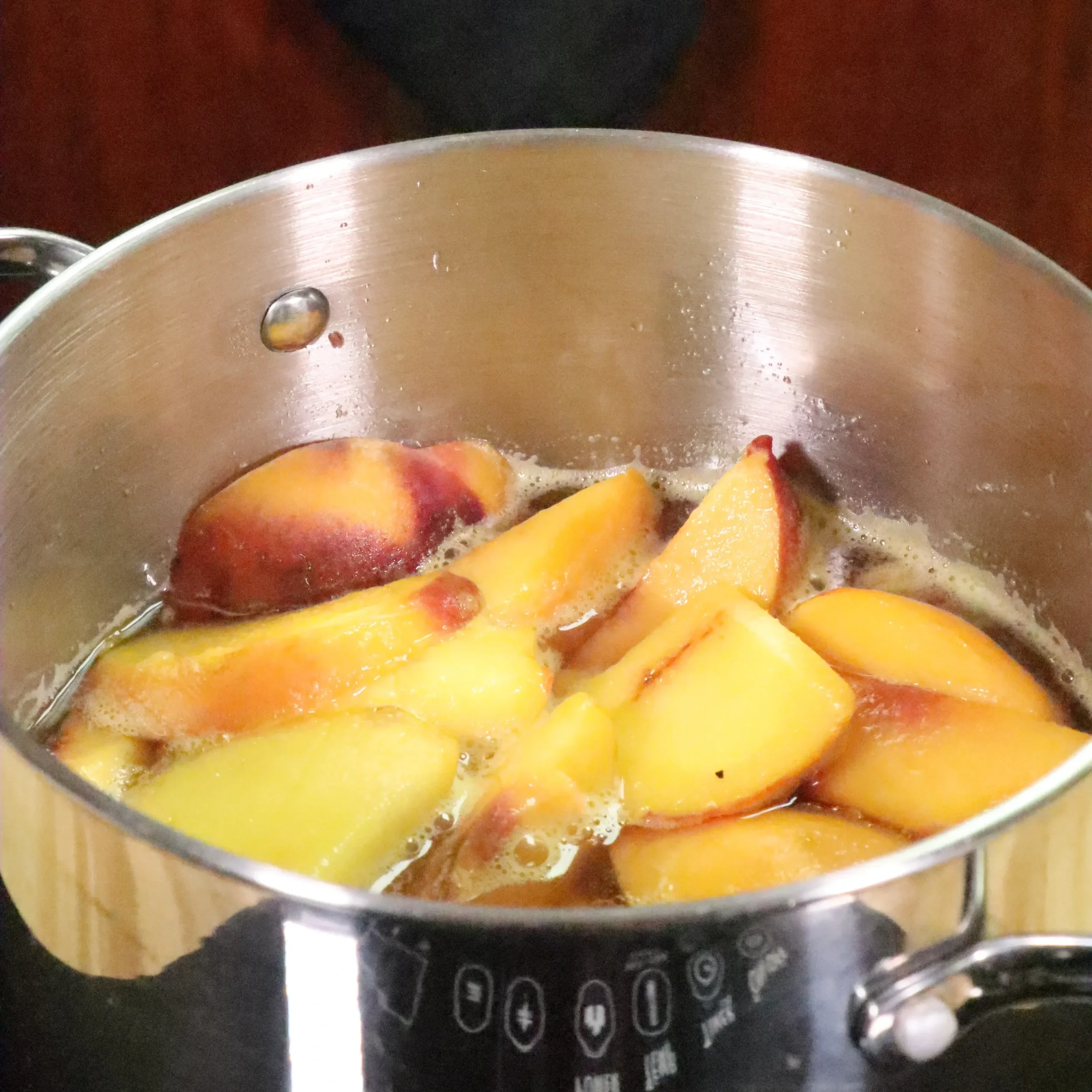 Or until the peaches have released their juices and open up and begin to get mushy.
